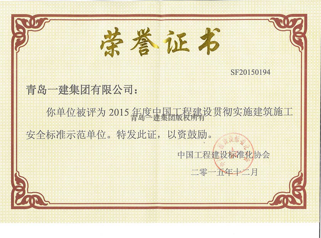 Certificate of Demonstration Unit of Chinese Engineering Construction Safety Standard Implementation