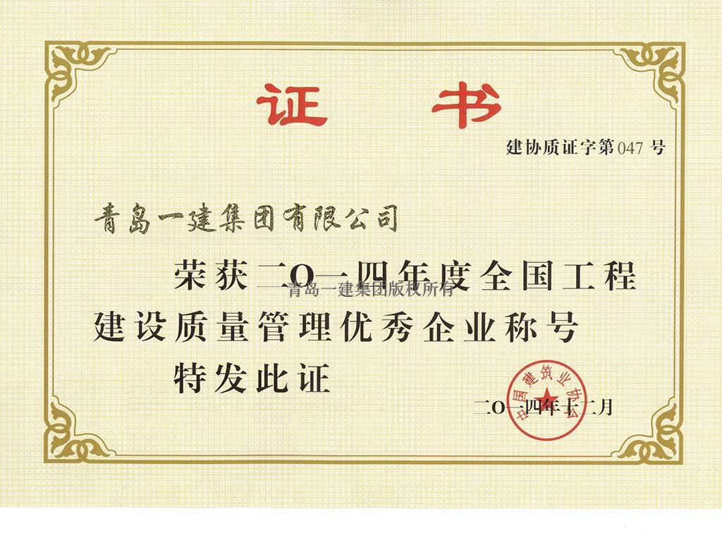 National Outstanding Enterprise of Engineering Construction Quality Management in 2014