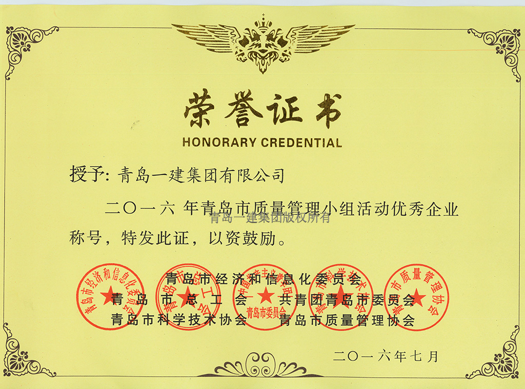 Outstanding Enterprise of Quality Management Group Activities in Qingdao