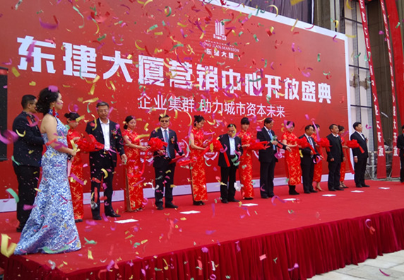 ? ? ? 上午10時(shí),在水鼓演員精彩的暖場演出后,身著盛裝的主持人宣布東建大廈營銷中心開放儀式正式開始。集團(tuán)公司總裁馬樹軍致辭。集團(tuán)公司董事長尚延青、副董事長陳吉?jiǎng)?、賈元平、趙君、總裁馬樹軍、副總裁韓新亭、王進(jìn)靑出席儀式并進(jìn)行剪彩,在現(xiàn)場禮樂伴奏中,禮炮齊鳴,彩帶飛揚(yáng)。參加儀式的領(lǐng)導(dǎo)和觀眾用熱烈的掌聲祝賀東建大廈營銷中心盛大啟幕!