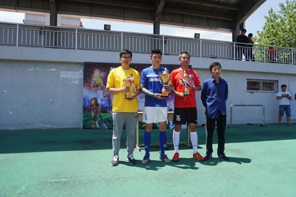最后一輪比賽海信地產(chǎn)對陣外貿(mào)學院,本輪賽前兩隊均全勝2場。這是一場決定冠亞軍歸屬的對決!上半場雙方立足防守,不斷尋求對方的破綻,踢得異常艱難,以1:0結束半場。下半場更為激烈,海信房地產(chǎn)代表隊憑借團隊精密協(xié)作,隊員球技精湛最終以3:0的比分取勝,并以9個積分的成績成功奪得冠軍。其他場次比賽,外貿(mào)學院以兩勝一負6個積分的成績榮獲亞軍,一建集團代表隊以3個積分榮獲季軍。